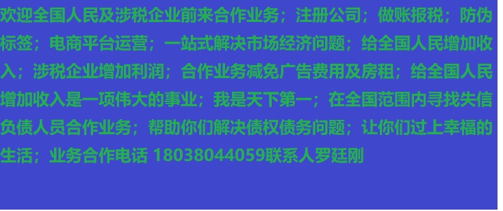 人進寶城全國招商;合作業(yè)務(wù)減免廣告費用;歡迎全國涉稅企業(yè)前來合作;業(yè)務(wù)合作電話 18038044059 聯(lián)系人羅廷剛